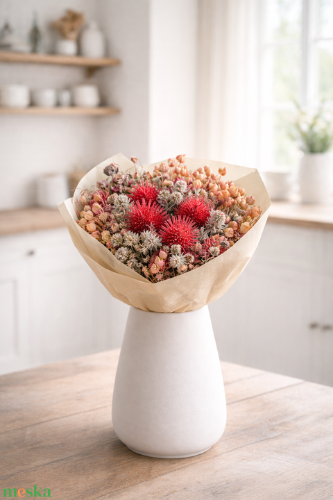 Szárazvirág csokor natúr és rózsaszínes színekkel