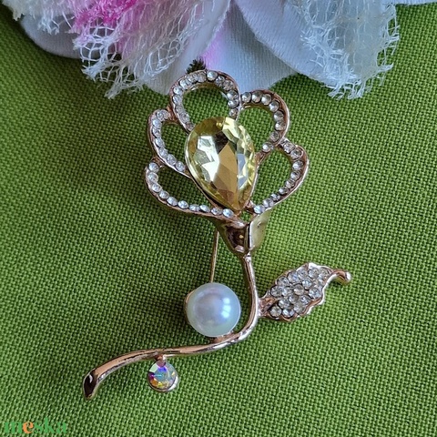Kitűző, bross BRO354 - Kristályköves, strsszos, gyöngyös 38x50mm