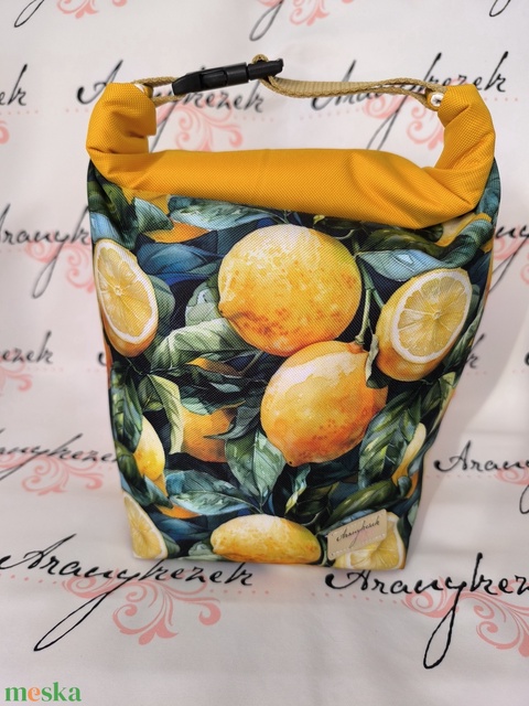 Citrom mintás-Vízálló uzsonnás tasak kézben vihető-PUL béléssel-Vállon is viheted egy megvásárolható pánttal