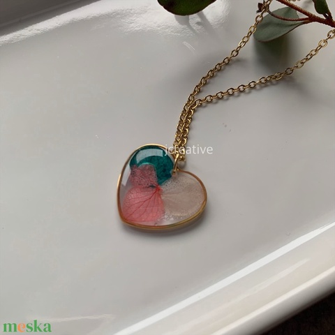 Valódi préselt hortenzia szív formájú medálban