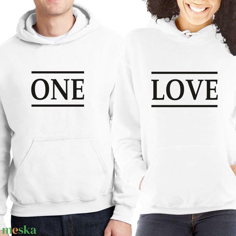 ONE LOVE páros kapucnis pulóver szett. Kapucnis pulcsik valentin napra, évforulóra. Ajándék pároknak.