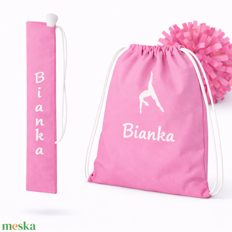 Mazsorett bottartó és pompom táska szett (rózsaszín) - névvel és logóval is kérhető