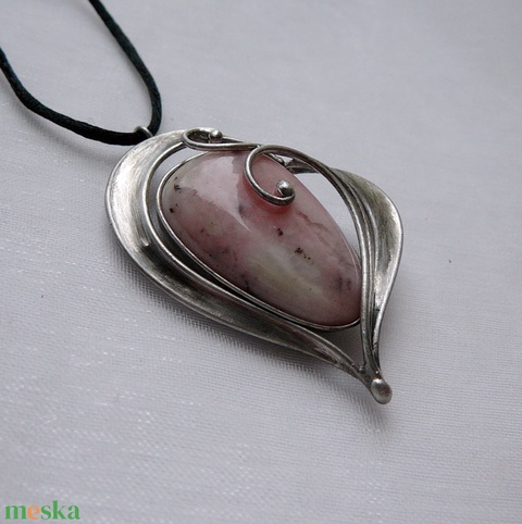 45 cm hosszú, nikkelmentes zárral ellátott szaténzsinórra akasztottam. A zsinór hosszát igény szerint méretre igazítom.