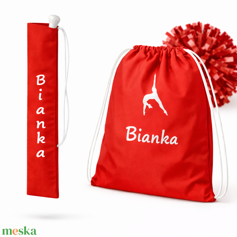 Mazsorett bottartó és pompom táska szett (piros) - névvel és logóval is kérhető
