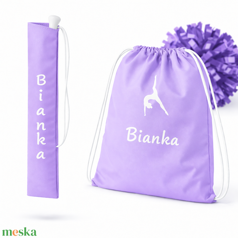 Mazsorett bottartó és pompom táska szett (világoslila) - névvel és logóval is kérhető