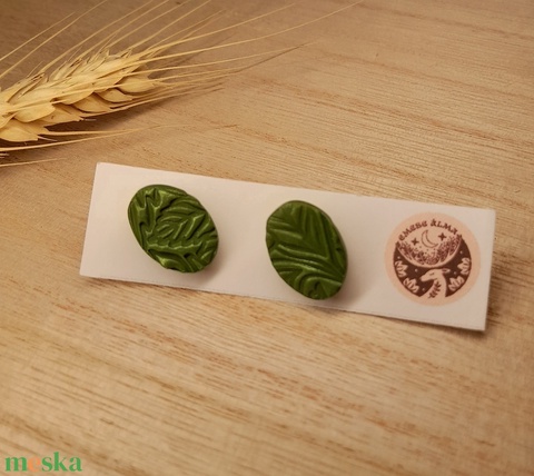 Zöld ovális bedugós fülbevaló