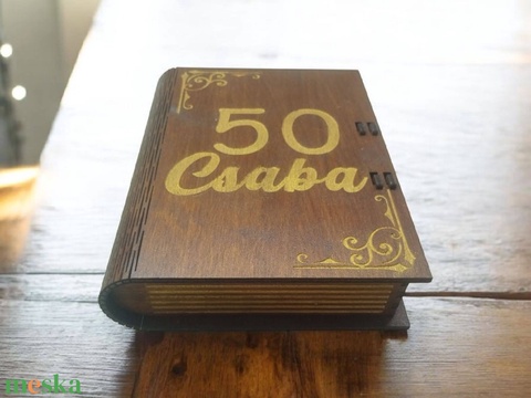 Egyedi gravírozott fa emlékdoboz – könyv stílusban