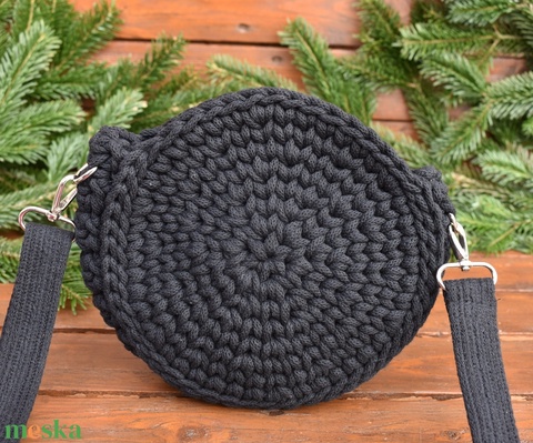 Horgolt táska - kerek - fekete