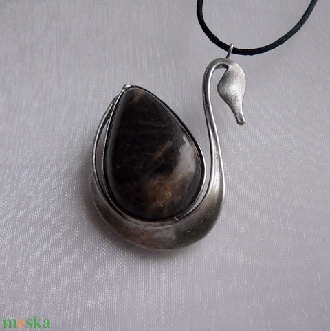 A medál Tiffany technikával készült holdkő és ólommentes, ezüsttartalmú ón felhasználásával. A díszítés szintén saját készítésű, nem tartalmaz gyári elemeket. A fémrészt óezüstre patináztam és lelakkoztam, hogy sokáig szép maradjon.