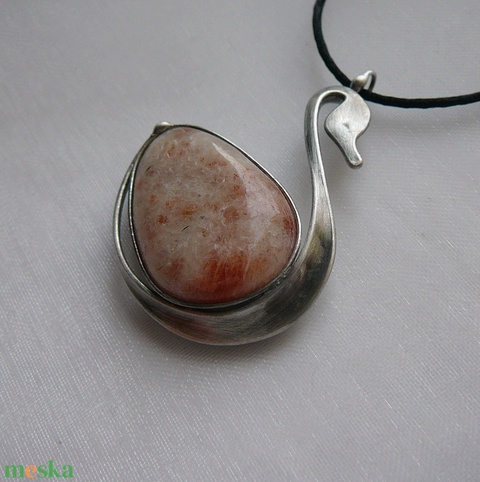 A medál Tiffany technikával készült napkő és ólommentes, ezüsttartalmú ón felhasználásával. A díszítés szintén saját készítésű, nem tartalmaz gyári elemeket. A fémrészt óezüstre patináztam és lelakkoztam hogy sokáig szép maradjon.