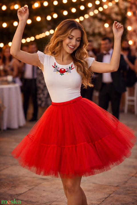 Hímzett body piros tüllszoknyával