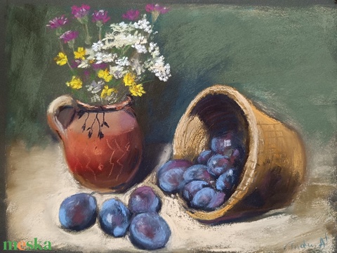 Őszi szilvás csendélet pasztell