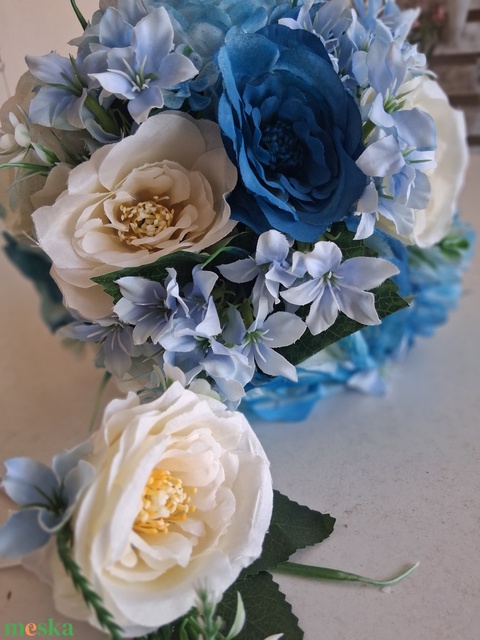 Kék fehér menyasszonyi csokor