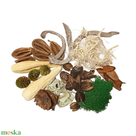 - Anyaga: szárazvirág, termés, dekoráció
