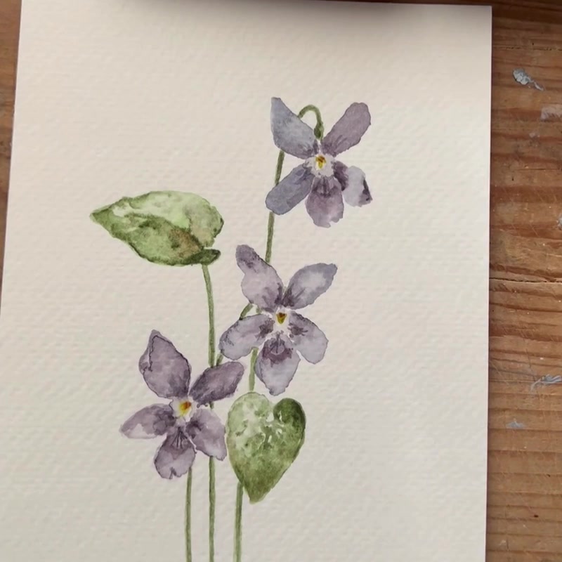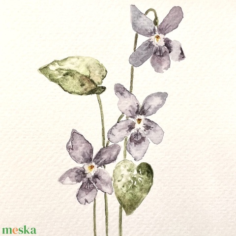 Eredeti akvarell ibolya virág festmény