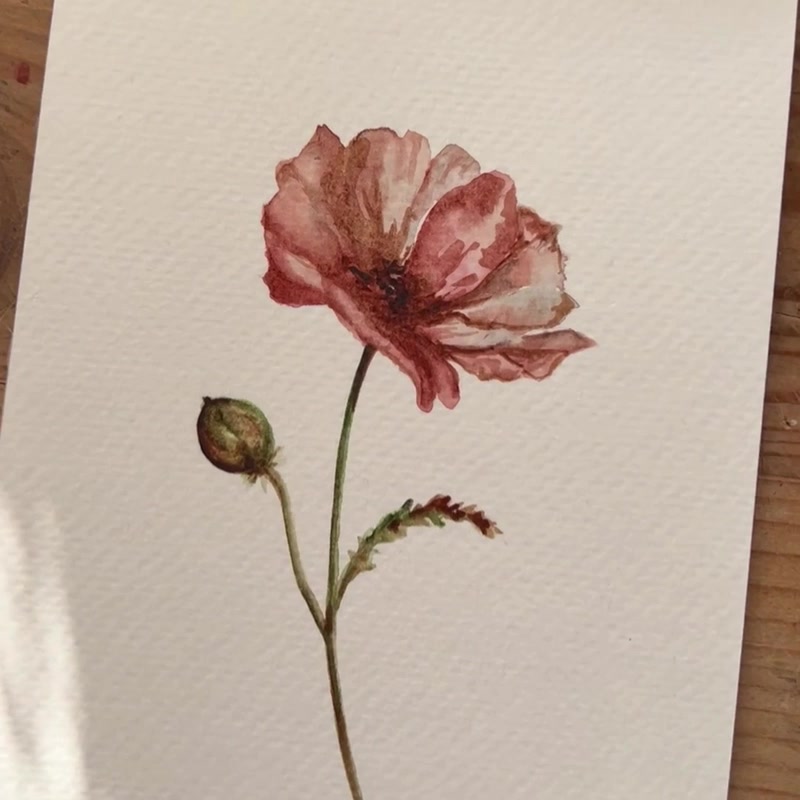 Eredeti akvarell keleti pipacs virág festmény