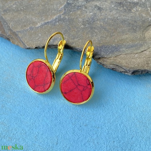 Piros festett howlit fülbevaló - 12mm-es nemesacél franciakapcsos alapban