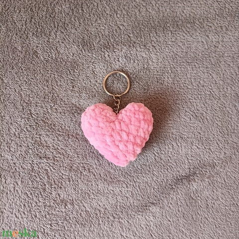 Horgolt rózsaszín szivecske kulcstartó