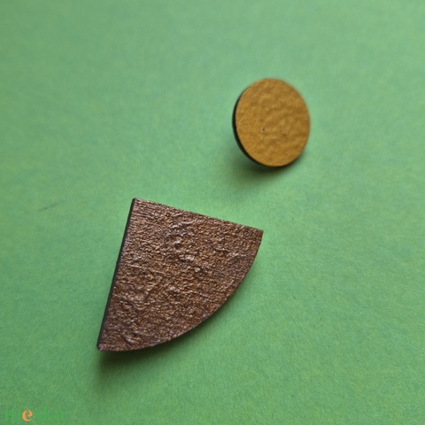 Aszimmetrikus barna-arany fa bedugós fülbevaló