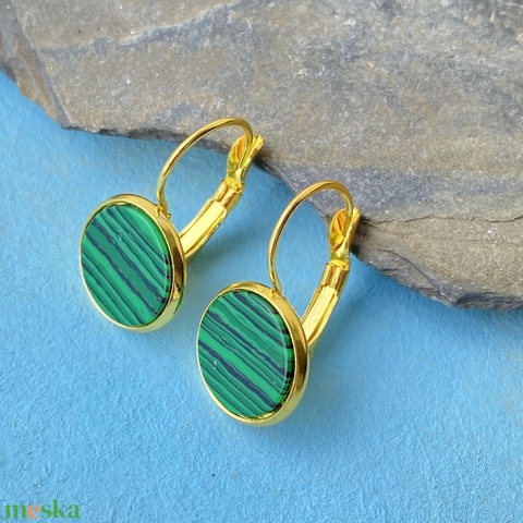 Malachit fülbevaló - 12mm-es nemesacél franciakapcsos alapban