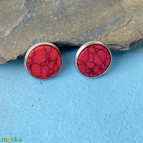 Piros festett howlit - 12 mm-es bedugós ásvány fülbevaló nemesacél alapban