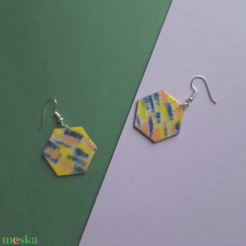 Színes lógós hatszög fa fülbevaló