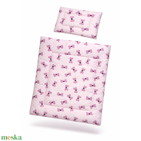 Rózsaszín pöttyös-masnis babaágynemű szett (takaró + párna)