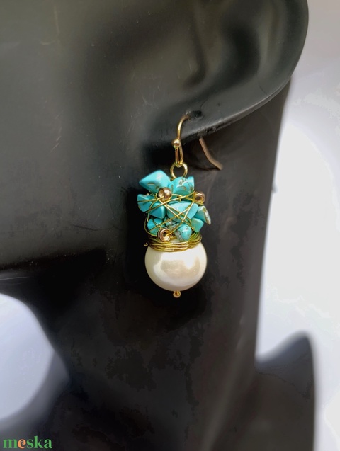 Türkiz-gyöngy fülbevaló pár