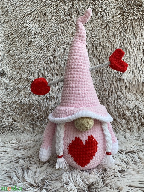Kézzel horgolt Valentin manó – szíves, nyilas - 35 cm