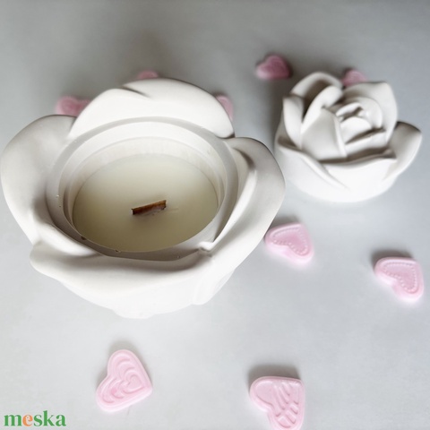 Rózsa formájú tégely – fa kanócos szójagyertya
