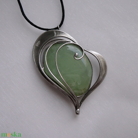 A medál tiffany technikával készült prehnit és ólommentes, ezüsttartalmú ón felhasználásával.