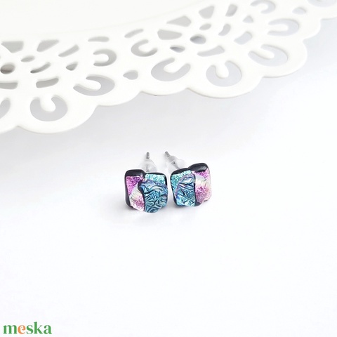 Kék-rózsaszín Dichroic üveg fülbevaló