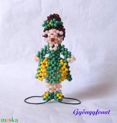 Lány csíkos szoknyában gyöngyből, kabalafigura