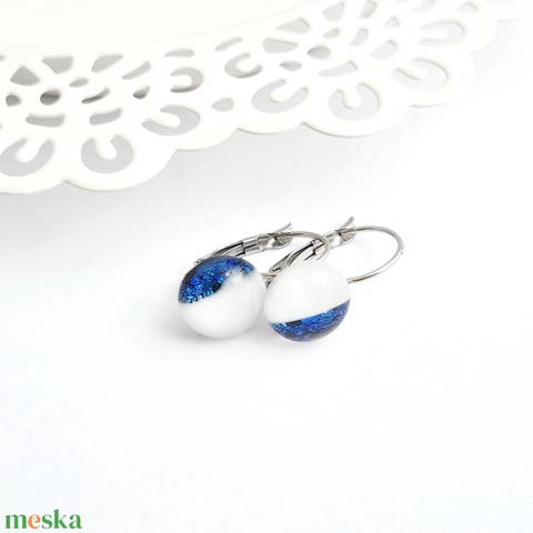 Fehér és kék Dichroic üveg kapcsos fülbevaló