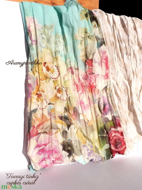 "Tavaszi türkiz" (Csipkés csősál, türkiz-vajszín-szürke) - Aranypántlika)