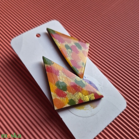 Őszi színű lógós háromszög fülbevaló