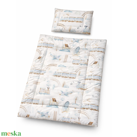 Fehér alapon vonatos-repülős gyerekágynemű szett (takaró + párna)