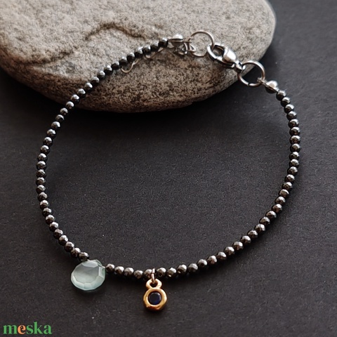 nemesacél szerelék, sodrony, kalcedon csepp, réz függő, hematit