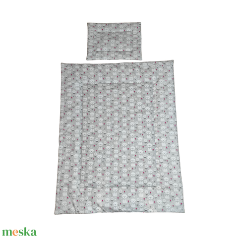 Szürke alapon fehér cicás gyerekágynemű szett (takaró + párna)