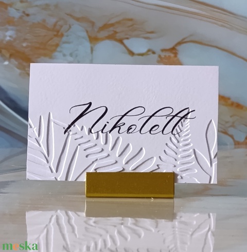 Dombornyomott, esküvői, növényes ültetőkártya, greenery névtábla, ültetőkártya, domborított, levelek, növények