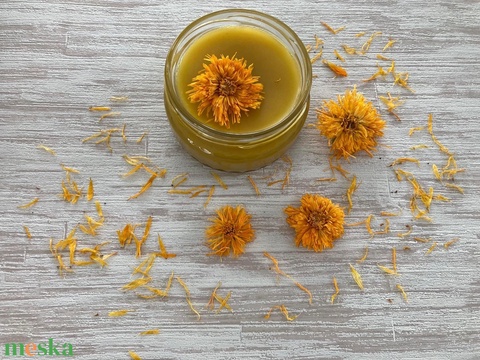- Anyaga: szárított körömvirág, méhviasz, szőlőmagolaj