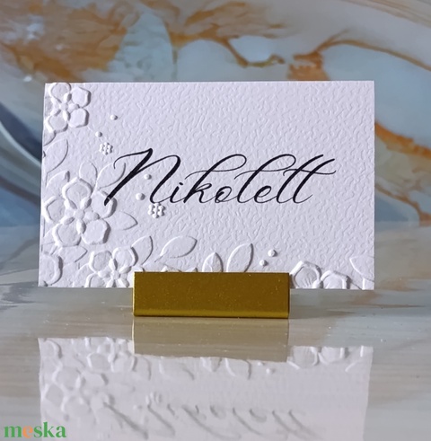 Dombornyomott, esküvői, növényes ültetőkártya, greenery névtábla, ültetőkártya, domborított, levelek, növények