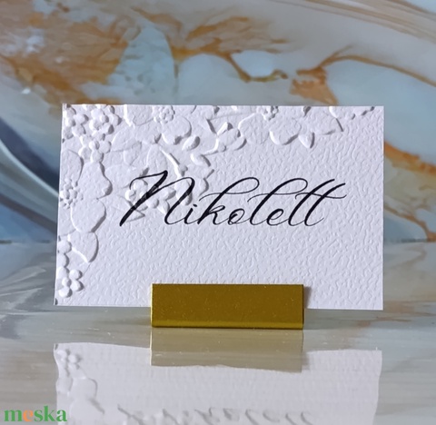 Dombornyomott, esküvői, növényes ültetőkártya, greenery névtábla, ültetőkártya, domborított, levelek, növények