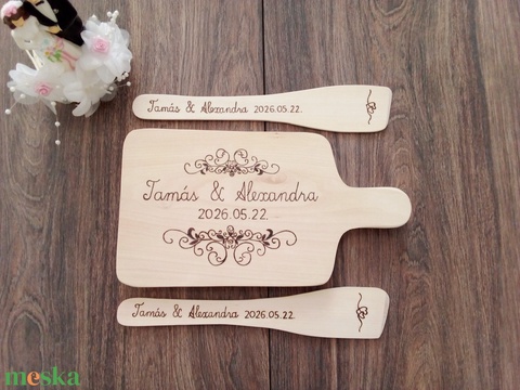 Esküvői nászajándék , esküvő - vágódeszka, fakanál, teflon lapát szett - 3 darabos