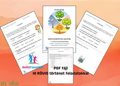 A „Szövegértő feladatok- Évszakok” csomag egy gondosan összeállított, nyomtatható PDF, amely 10 egyedi történetet, hozzájuk kapcsolódó kérdéssorokat, feladatokat tartalmaz. A terméket digitálisan kapod meg e-mailben, és otthon tudod kinyomtatni, többször felhasználni.