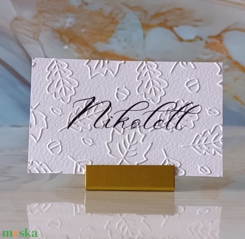 Dombornyomott, esküvői, őszi leveles ültetőkártya, névtábla, ültetőkártya, domborított, ősz, levelek, hulló levelek