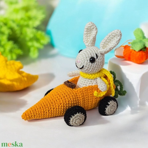 Horgolt nyuszi répaautóval