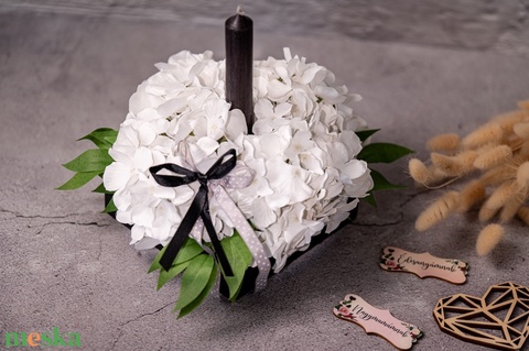 - Anyaga: gyertya, selyemvirág, fa, szalag
