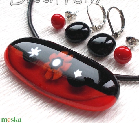 Piros - fekete virágos ékszer, ajándék nőnek, lányoknyak, névnapra, születésnapra.