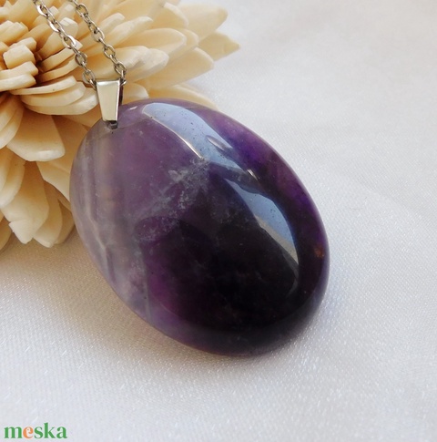 Orvosi acél szerelékre akasztottam ezt a különlegesen szép ametiszt medált.